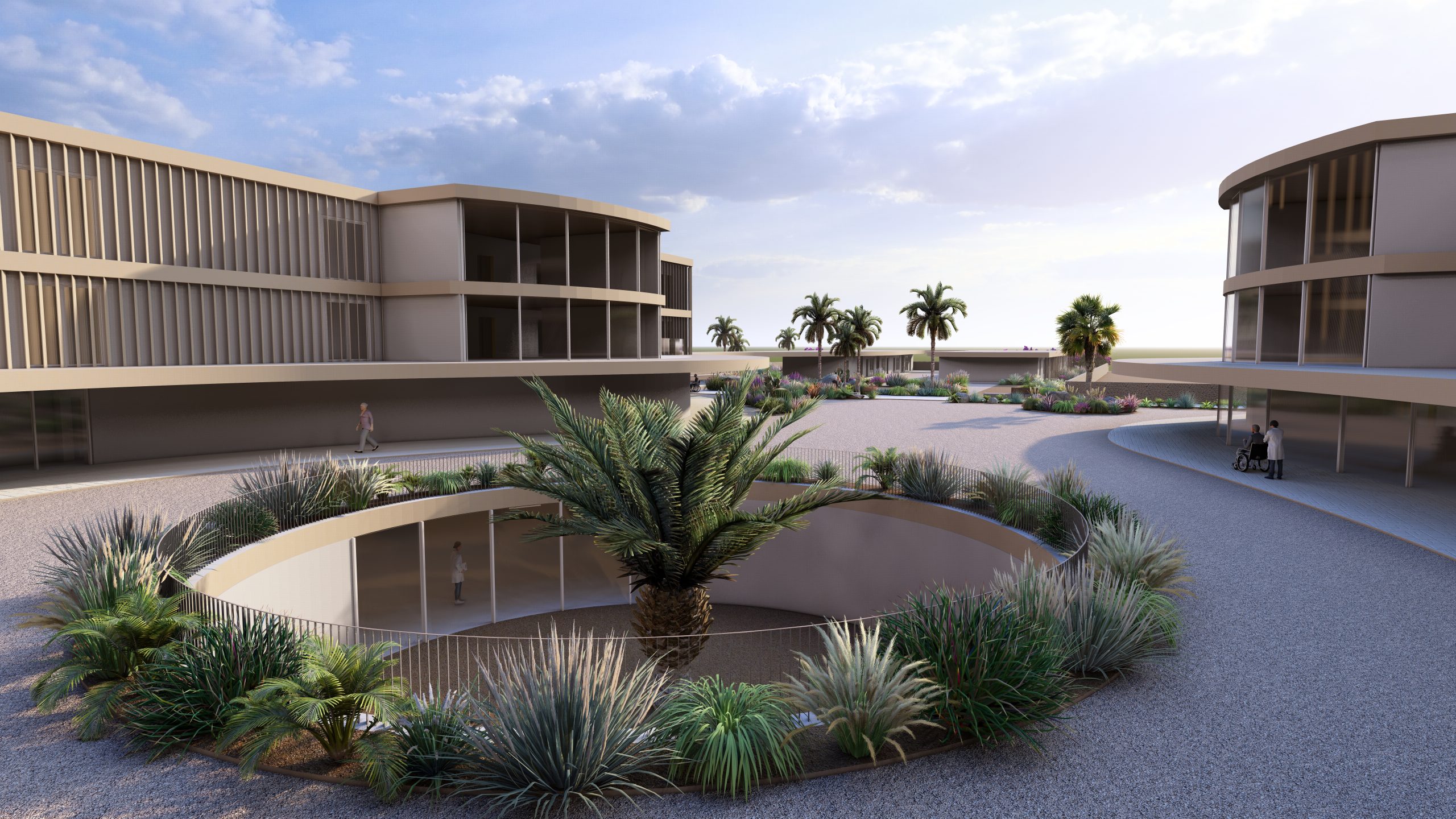 Il progetto integra soluzioni bioclimatiche e una distribuzione razionale dei percorsi (sporco/pulito, visitatori/fornitori). La zona baricentrica di ogni nucleo ospita la medicheria e i soggiorni, garantendo un’assistenza tempestiva. Grande importanza è data alle terapie non farmacologiche, con spazi dedicati come la Snoezelen Room e aree per attività occupazionali, integrate in un sistema di “paesaggi terapeutici” che alternano momenti collettivi a spazi di intima riflessione.